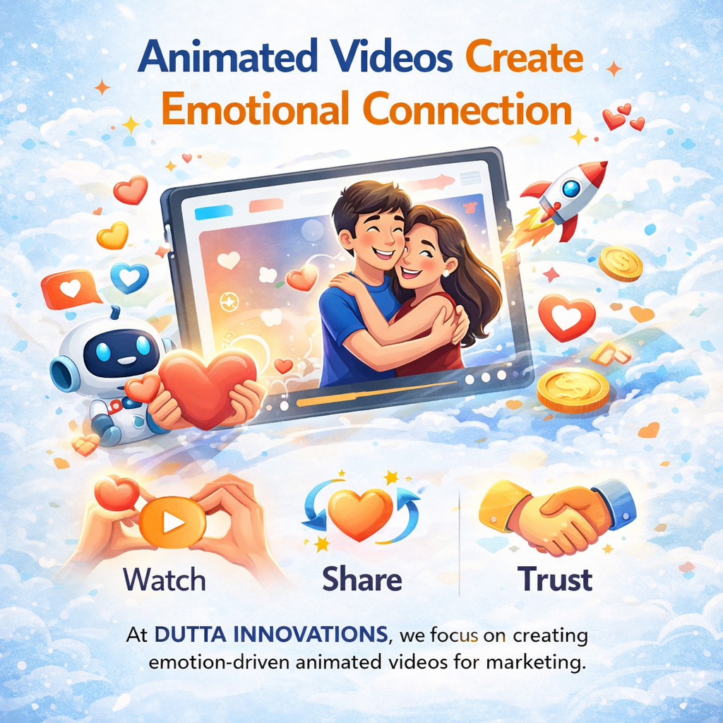 At DUTTA INNOVATIONS, we focus on creating emotion-driven animated videos for marketing.